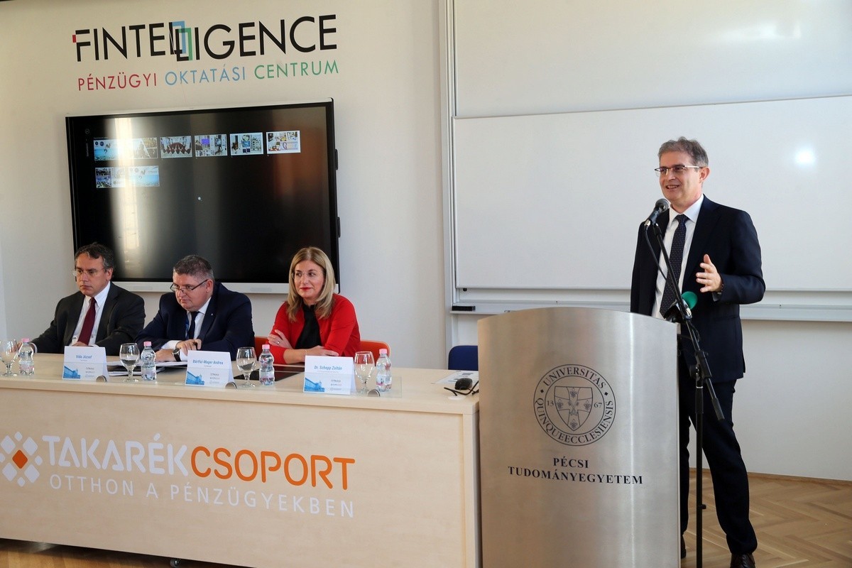 Az MTI-hez eljuttatott tájékoztató szerint a nagy egyetemeken létrehozott Fintelligence pénzügyi oktatási központok országos hálózatba szerveződnek. A 21. századi modern pénzügyi edukációs előadóterem mellett számos érdekes, banktörténeti elemeket felvonultató kiállítóteret is kialakítottak Pécsett. A legkorszerűbb technológiával felszerelt központ nagymértékben segíti a pénzügyi műveltség elmélyítését, ideális helyszínt biztosít egyetemi szintű kurzusoknak, konferenciáknak, ismeretterjesztő előadásoknak és iskolás csoportok fogadásának - írták.