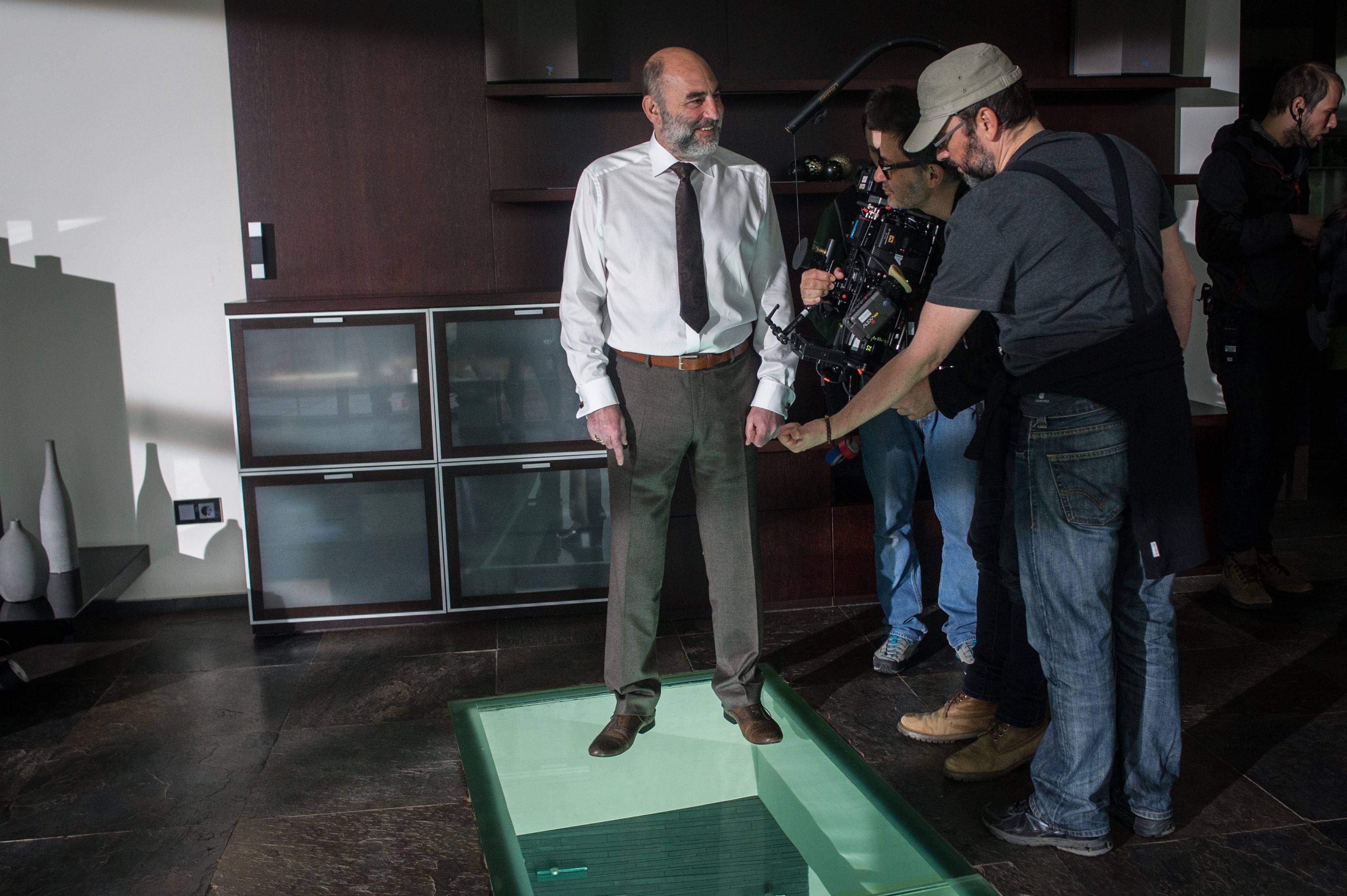 Kulka János színművész (j) és Ujj Mészáros Károly rendező (b) az X. című skandináv típusú krimije forgatásán Budapesten 2017. április 13-án - MTI Fotó: Kallos Bea