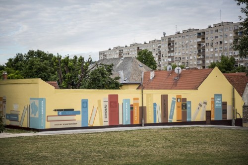 Krúdy Gyula író életéhez kapcsolódó műveket festettek az óbudai Tanuló utcában lévő Katolikus Plébánia melléképületének falára.