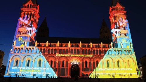 Pénteken kezdődik a második Zsolnay Fényfesztivál Pécsen, amelyen vasárnapig több mint 10 ezer négyzetméternyi vetített felületet keltenek életre a belvárosában.