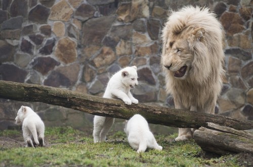 Három fehér oroszlán (Panthera leo krugeri) született a Nyíregyházi Állatparkban.